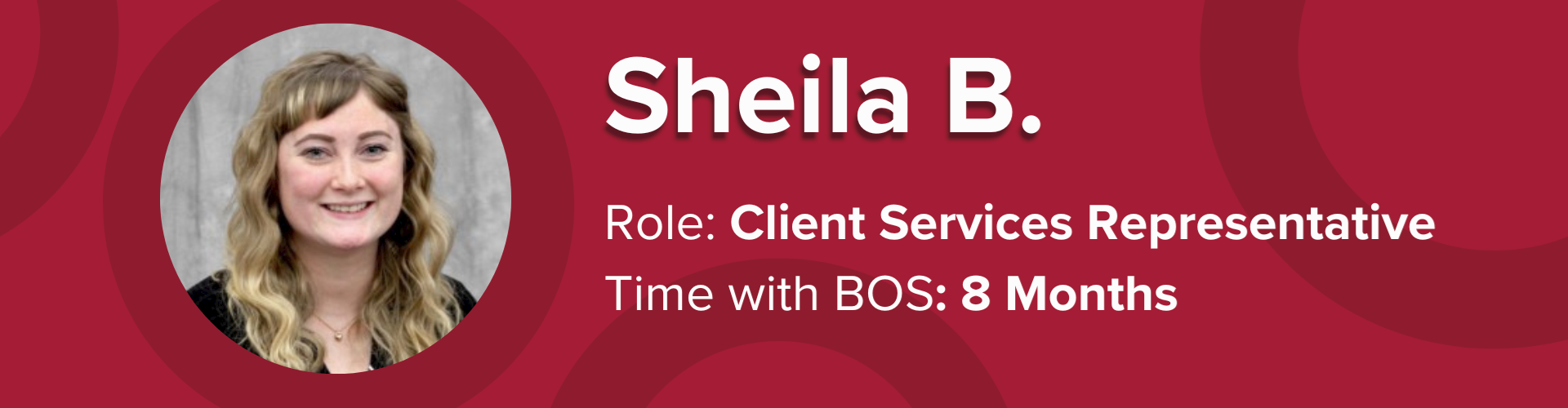Sheila B.’s steadfast dedication, outstanding teamwork, and relentless pursuit of excellence make her standout. We are incredibly proud to have Sheila as a key member of our team, and we can’t wait to see the many more accomplishments she will achieve throughout her journey with us, continuing to inspire and contribute to the growing success at BOS.