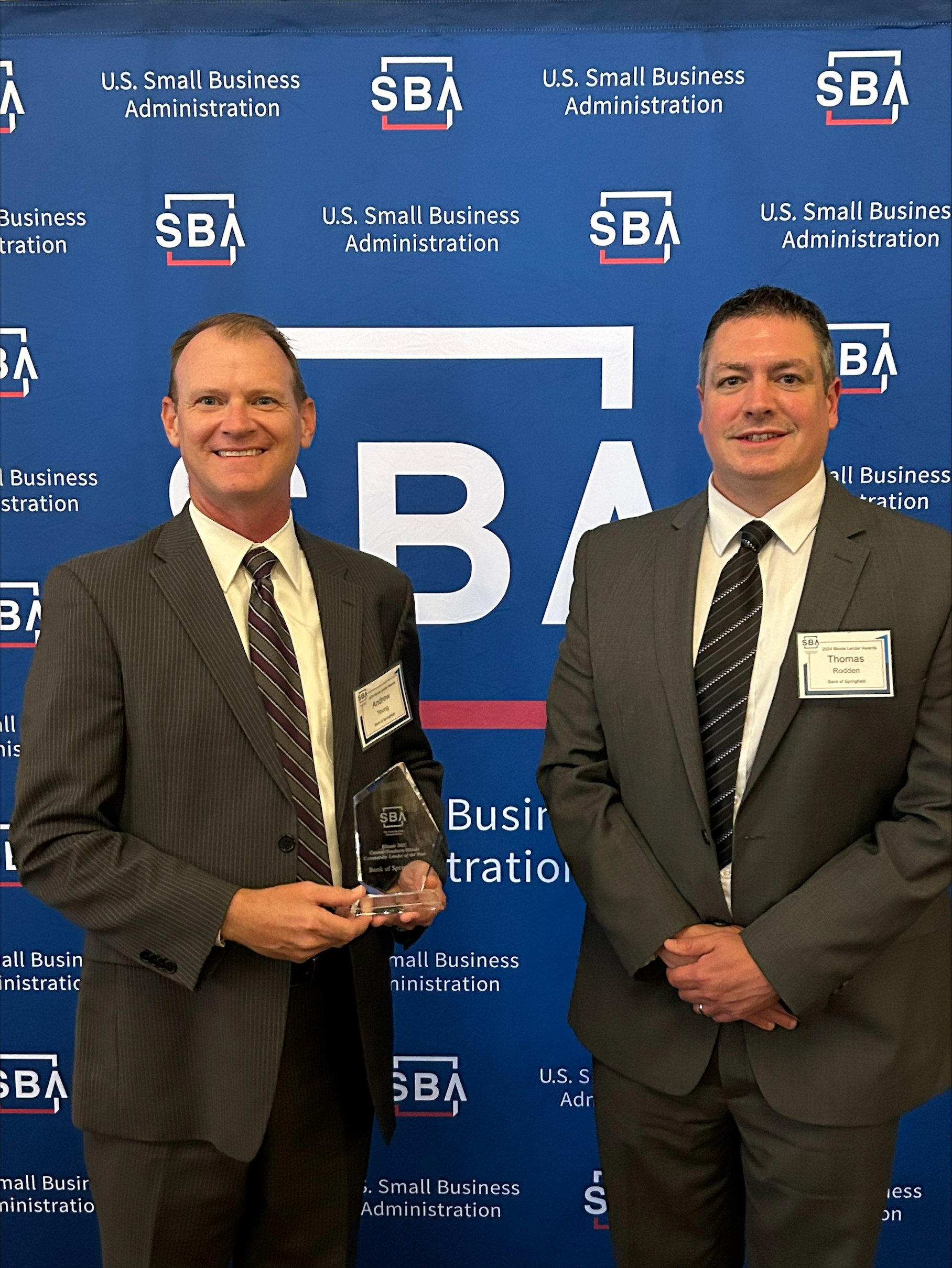 Accepting the Award is Andrew Young, VP SBA Lending, and Thomas Rodden, VP Commercial & SBA Lending Officer.